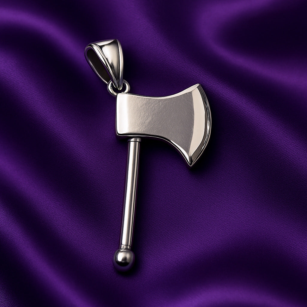 Forged in sterling silver, the axe pendant reflects justice, protection, and unwavering resolve. Its clean lines and polished form speak of discipline and artistry — a modern talisman for those who value strength not as force, but as principle.